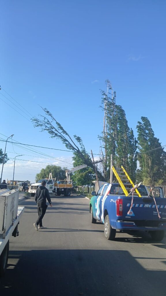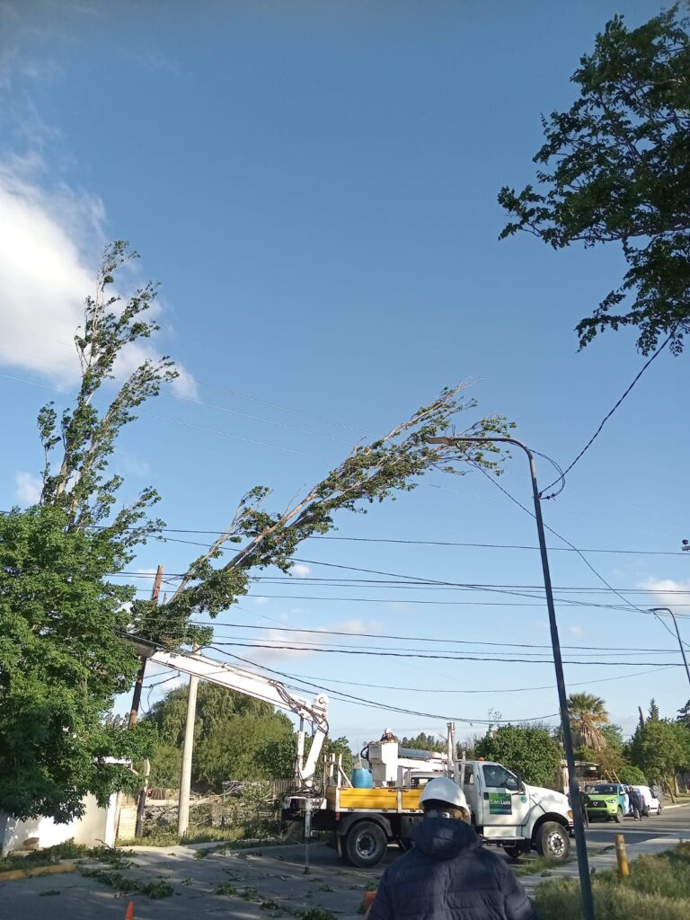 Arbol caído y otro ladeado sobre las líneas de baja y media tensión han producido un corte de energía en la zona de Barrio Unión, Ruta 146 sur y Autopista R7