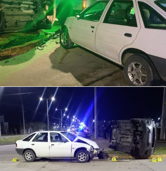 A raíz del impacto, el Chevrolet Ónix Joy volcó y quedó apoyado sobre uno de los laterales en la carpeta asfáltica.