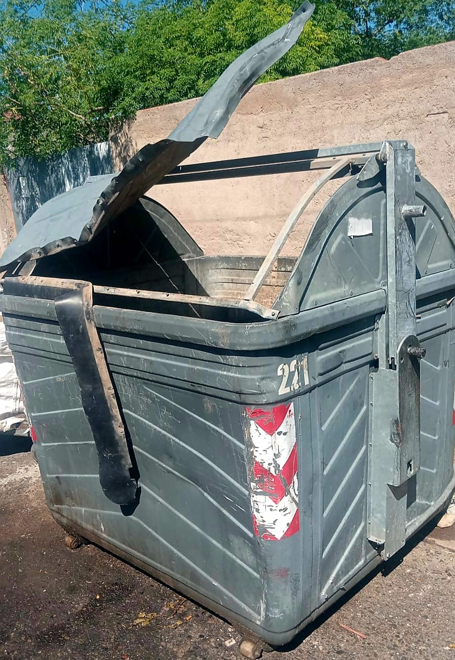 Al llegar al lugar, el personal policial observó a un masculino dentro del contenedor municipal. Según lo informado por los vecinos, el hombre habría estado utilizando un hierro para hacer palanca y retirar chapas de aluminio del marco superior del contenedor, logrando desprender parte de la tapa y su estructura.