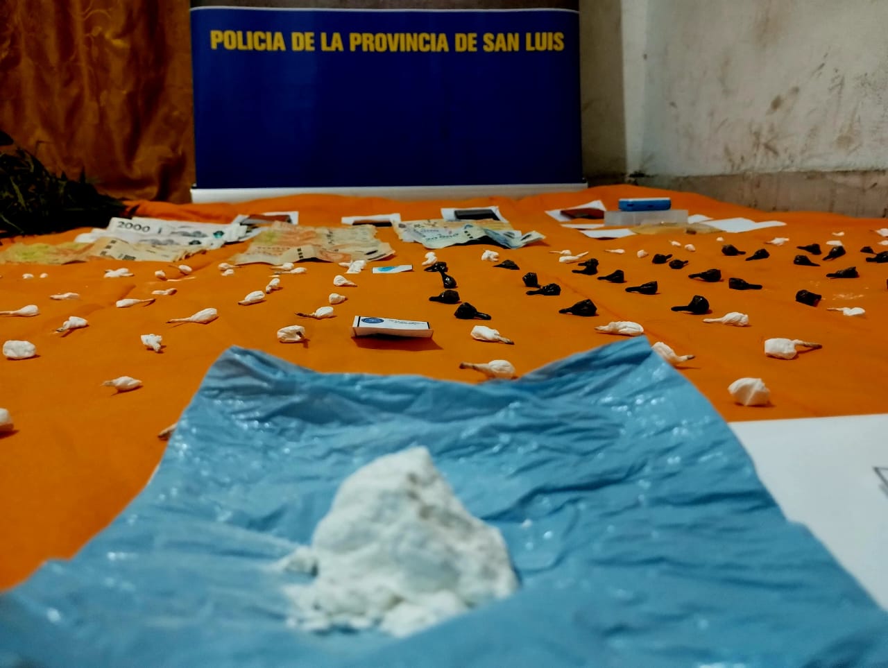 Además, se secuestró una planta de cannabis sativa, cuatro teléfonos celulares, un posnet, 106.000 pesos en efectivo y distintos elementos de corte y estiramiento utilizados para fraccionar la droga.
