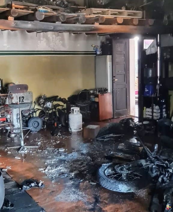 Por su parte, efectivos de la Dirección General de Bomberos de la Policía sofocaron el incendio en el interior del taller, cuyo fuego también afectó a otras dos motocicletas que se encontraban en el lugar. Posteriormente, los bomberos realizaron las tareas de ventilación e inspección en ese sitio.
