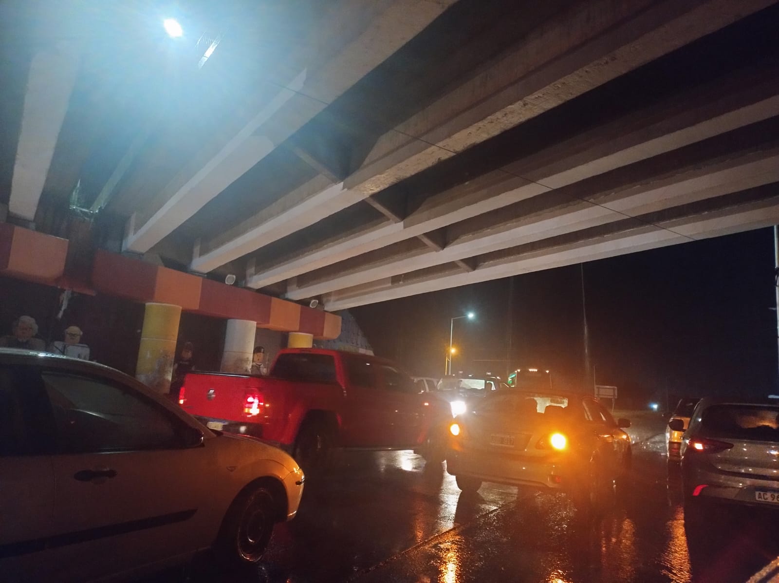 La imagen en este caso fue la del puente de ruta nac 147 y ruta nac. 146 donde al menos unos 30 vehículos buscaron guarecerse de la piedra y los destrozos que la misma provoca.