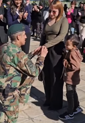 Con emoción y ante la mirada atenta de compañeros, familiares y autoridades, Sáez dejó de lado el uniforme por un instante para hablar desde el corazón… y arrodillarse. La sorpresa dio paso a la emoción cuando le propuso matrimonio, en un momento cargado de amor, complicidad y futuro compartido. Un final inesperado que convirtió la ceremonia en una historia inolvidable.